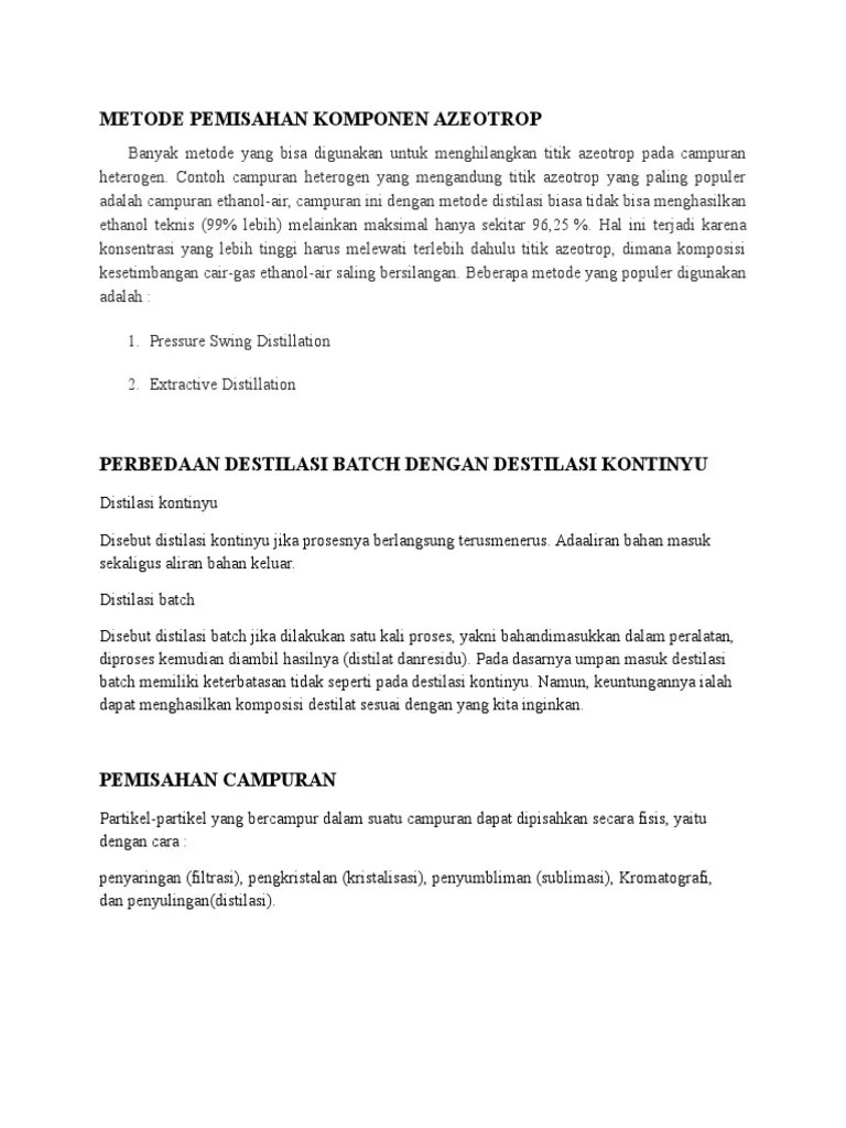 Campuran tersusun atas beberapa unsur ataupun senyawa kimia yang dapat dipisahkan berdasarkan sifat zat penyusunnya. Komponen warna pada makanan dapat dipisahkan dengan metode … Contoh kristalisasi adalah pemisahan air tebu dari ampas tebu untuk. Campuran dapat dipisahkan dengan metode filtrasi (penyaringan). Materi pada kali ini akan kita bahas mengenai pemisahan campuran :